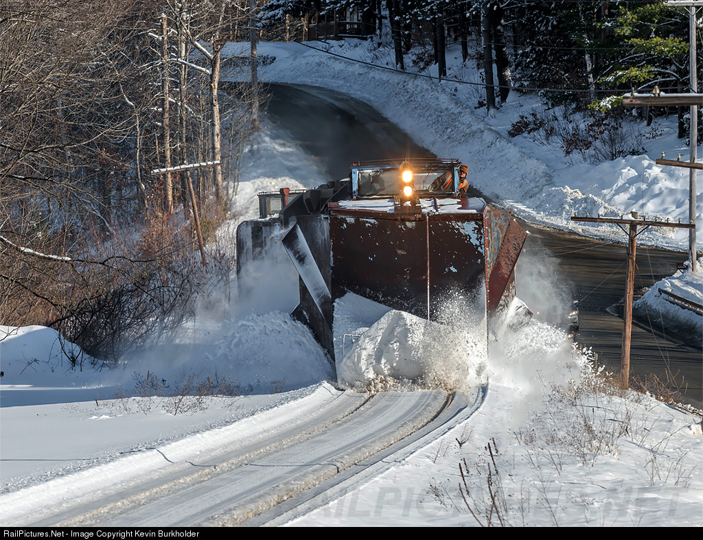 On February 10, Pan Am Southern Railway dispatched a pair of plow extras out of East Deerfield Yard in Massachusetts. The mainline plow extra with the pair of Boston & Maine double track plows went west to North Adams, Massachusetts, before returning to East Deerfield. The plow extra is seen at Charlemont, Massachusetts westbound in the early afternoon hours.