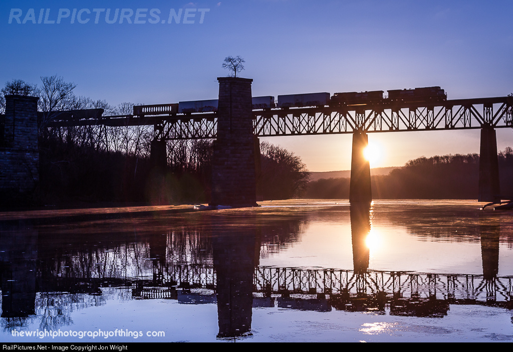 35Q moves high above the Potomac River on the Norfolk Southern H Line during a frigid winter sunrise