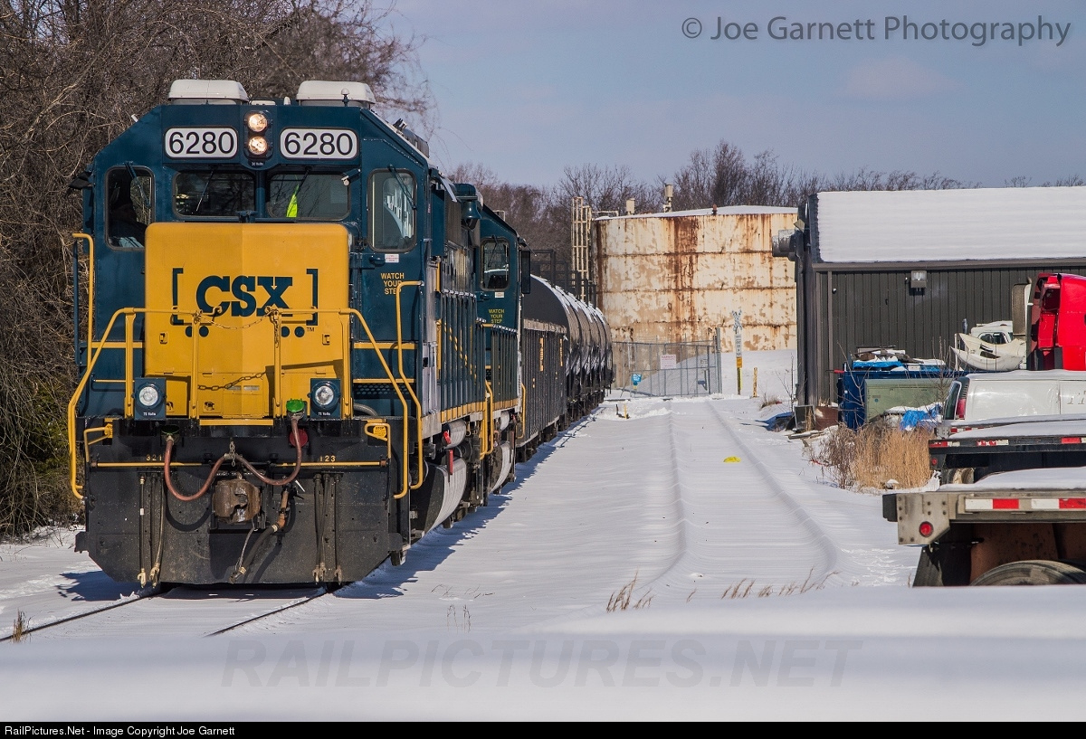 On a bitterly cold February morning, the local is seen shoving back to make the pickup of empties at TransFlo. As evident by the track at right covered in snow, this is the first day this week that the local has operated here, where normally, it is a daily operation.
