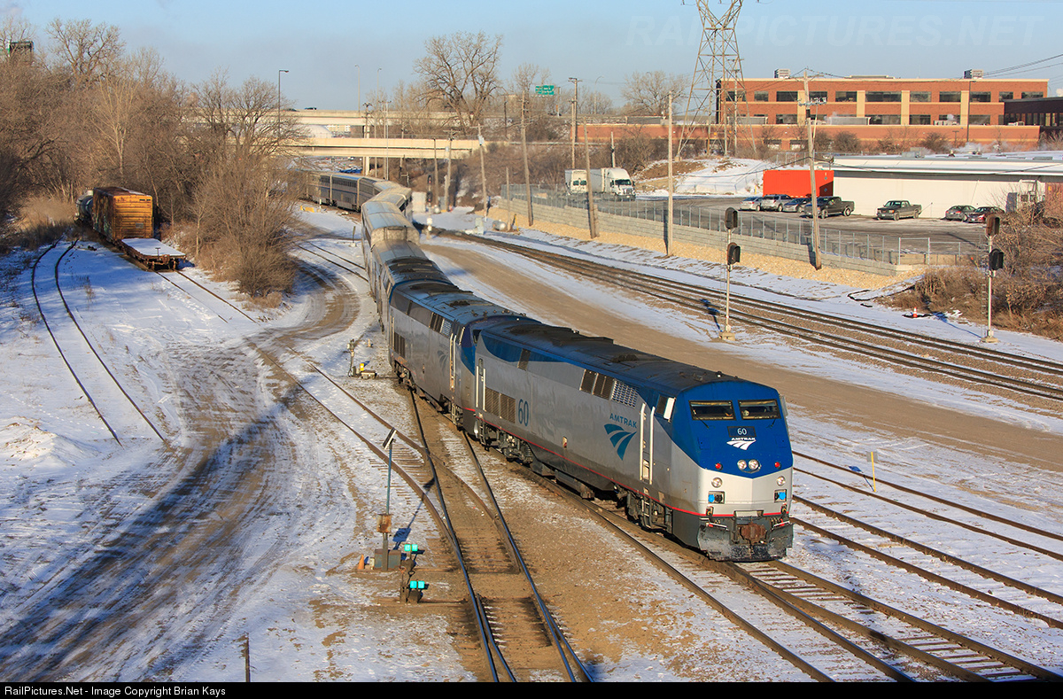 | The Empire Builder takes a series of switches through St. Anthony Junction into the Minnesota Commercial A Yard. It's a cold February day here in Minnesota! -9F with a much colder windchill making the experience aligning the switches through the A Yard pretty miserable. |