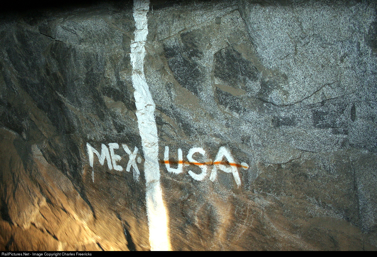 This is the international border between Mexico and the United States on the old San Diego & Arizona Eastern (as snapped from a passing train traveling between Campo CA and Garcia, BC, Mexico.
