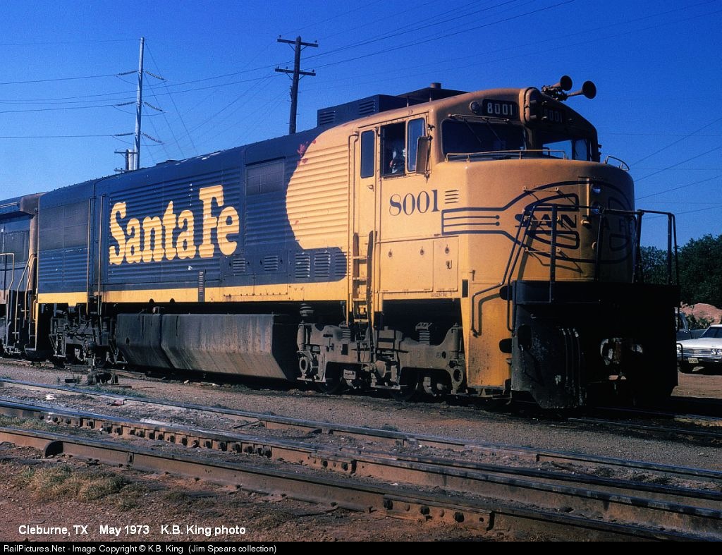 RailPictures.Net Photo: ATSF 8001 Atchison, Topeka & Santa Fe (ATSF) GE U30CG at Cleburne, Texas by K.B. King (Jim Spears collection)