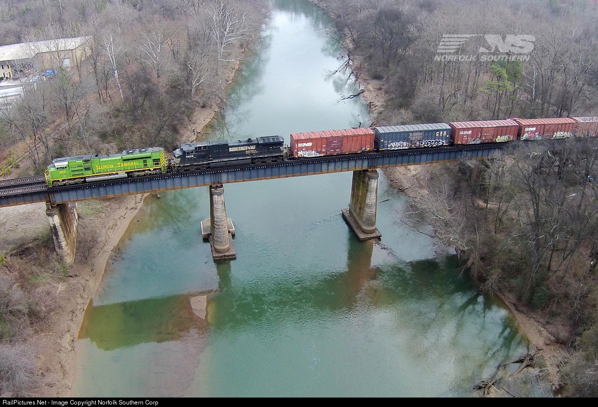 Norfolk Southern's daily Macon to Elkhart freight, train number 174, crosses the Chattahoochee River as it departs Atlanta, Georgia, led by the Illinois Terminal heritage unit (SD70ACe #1072). Photo by Casey Thomason. For more information about Norfolk Southern, visit www.nscorp.com