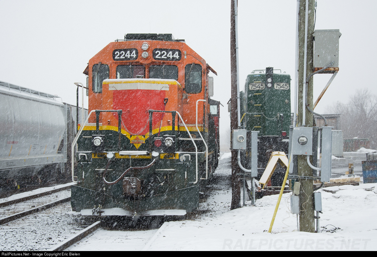 RCRY power sitting in the yard on a snowy Sunday afternoon. LTEX 2244 is an ex BNSF geep and 7545 is an ex Conrail GP10.