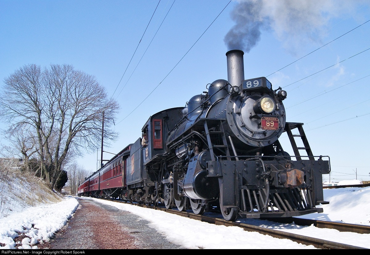 Former Canadian National 'Mogul' #89 heads west towards East Strasburg Depot with the 1:00pm excursion, seen here departing from the end of the line at Leaman Place Junction.