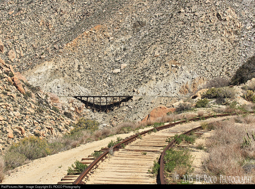 Trestle Past MP 97 - After rolling through Tunnel #5, the track is now in the Carrizo Gorge and this is the view looking eastward at MP 97.