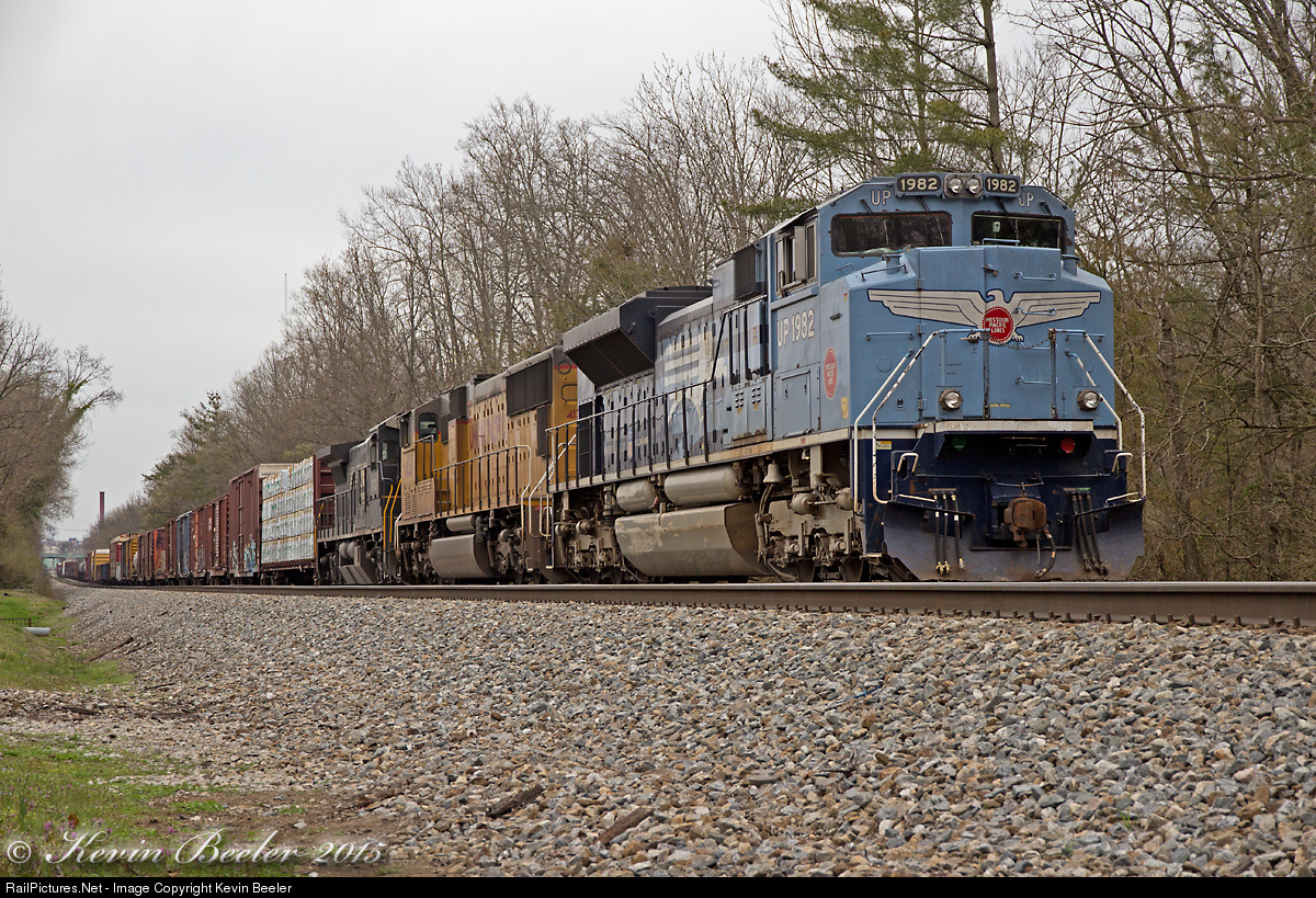 | MoPac! A detoured NS 117 makes a very unusual run through Knoxville. However, the biggest stir wasn’t caused by the re-routed train. The big story was the lead unit. Railfans seem to come out of the woodwork on this overcast Sunday afternoon, in order to get their shots of UP 1982. The MoPac unit is far from home territory, and it’s not everyday that you see a UP heritage unit in TN. |