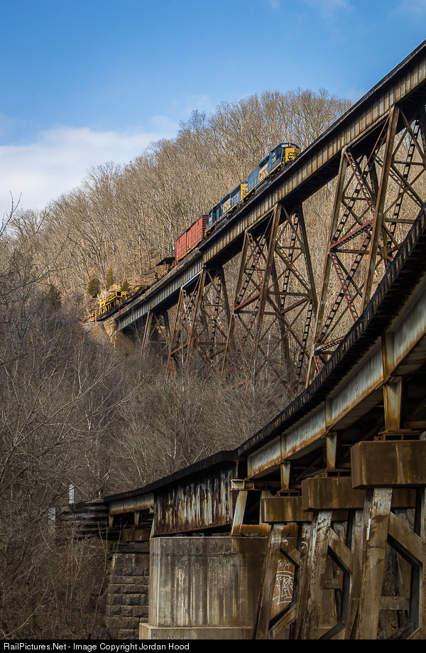 | After MOW crews cleared up the main, a rail train gets on the move to Erwin, TN as they cross the impressive Copper Creek viaduct on CSX's Kingsport Subdivision. |