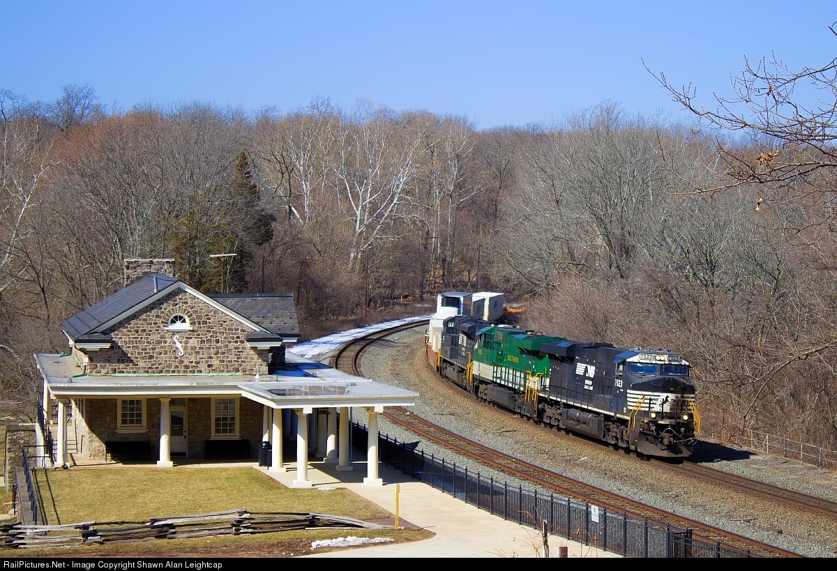 The Southern Heritage unit passing through Valley Forge Train Station. The station now a museum sits next to George Washington's Headquarters at Valley Forge National Park. Valley Forge National Historical Park is the site of the third winter encampment of the Continental Army during the American Revolutionary War, taking place from December 19, 1777 to June 19, 1778