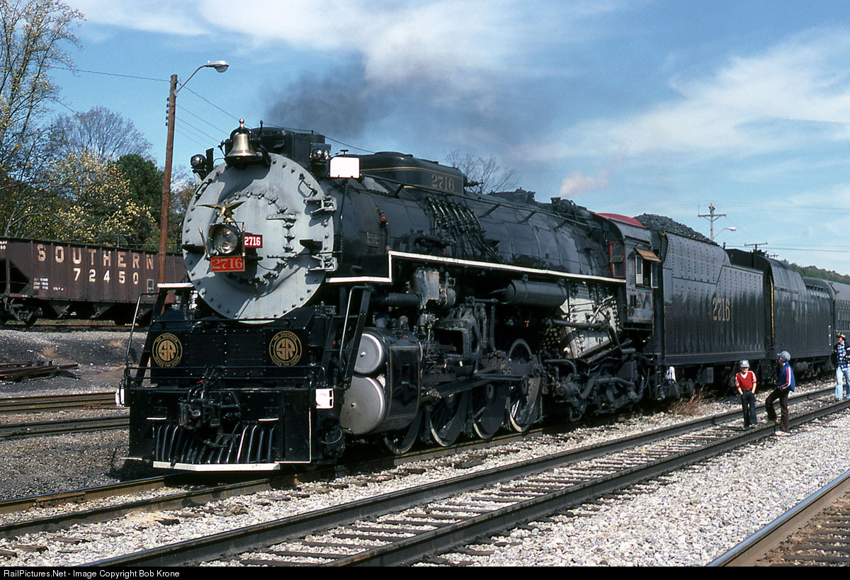 | Former Chesapeake and Ohio K-4 2-8-4 2716 shows off its Southern identity at Emory Gap, TN. The engine has been turned and serviced while awaiting the special's return from Crossville behind FP7s. |