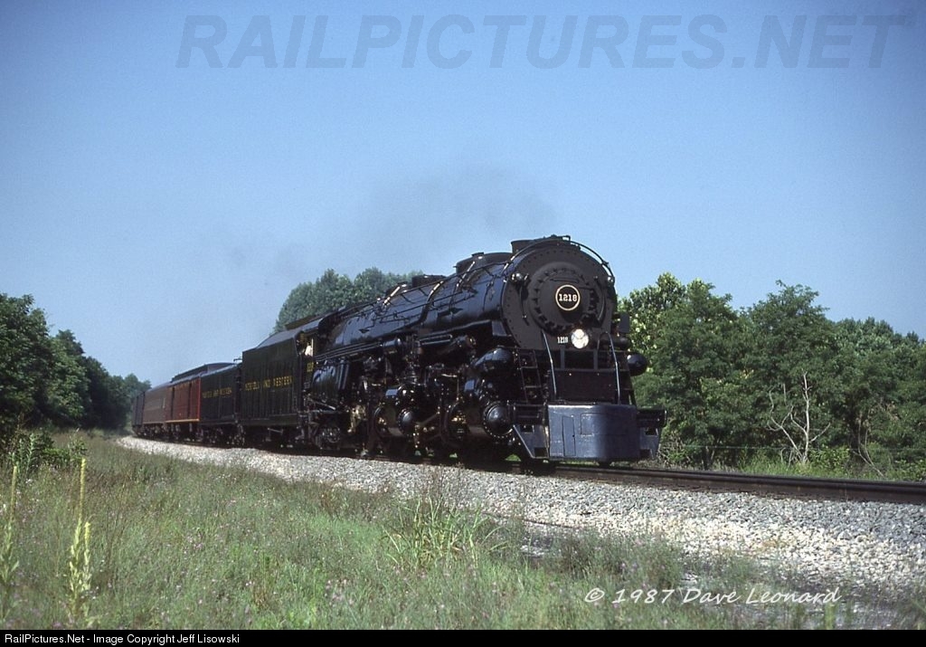 Photographer- Dave Leonard- from the 35 mm original Kodachrome slide. N&W 'A' Class leads her charge effortlessly through Lowry, VA enroute from Roanoke to Alexandria. She will stop in Lynchburg and drop the freight that is tucked in behind the two cars pictured. The next day will be northern Virginia's first time seeing the "Mercedes of Steam" in action.