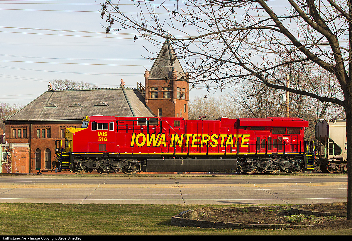 An Iowa Interstate crew begins to double its train out of Limit Yard on the North side of Peoria, as it passes the old waterworks building on April 1st, 2015.