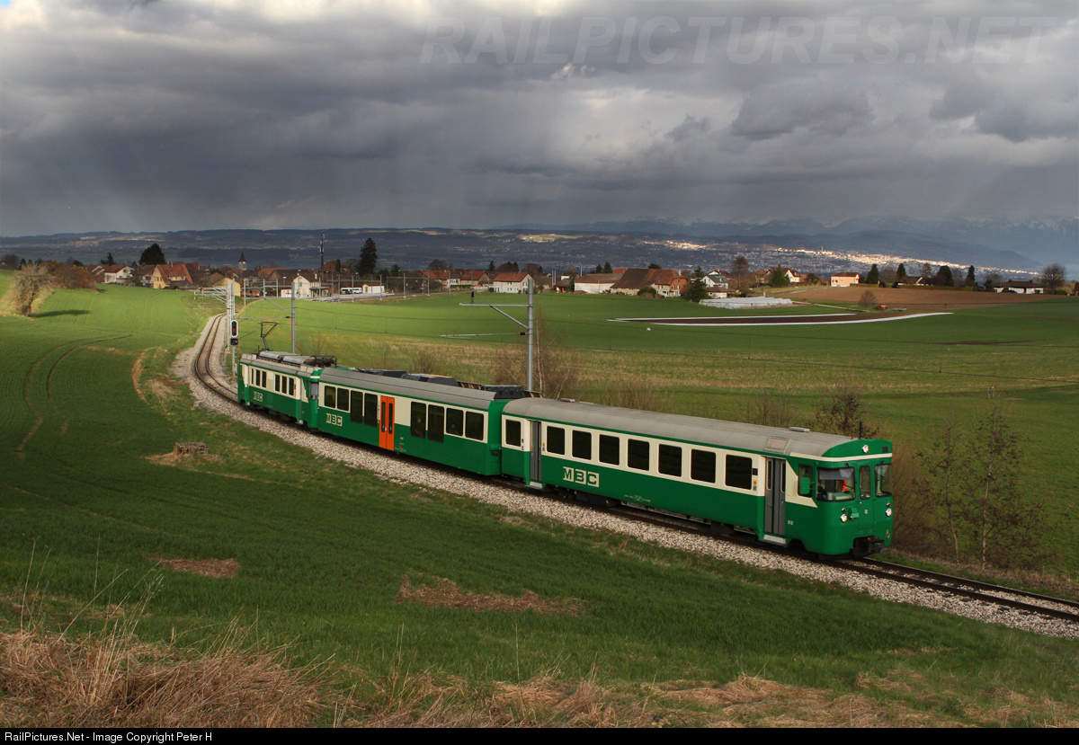 | Only small glimpses of sun rays fell through the fast moving, rain loaded clouds on the afternoon of first of April 2015 when I caught the regional train from Morges to Bière. This secondary narrow gauge railway runs through the lovely countryside on the border of the lake Geneva. In the background the town of Lausanne (the last weeks host for the Iranian nuclear discussions) is visible in another sunny spot.