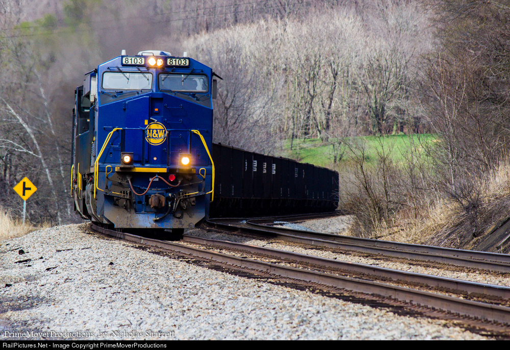 | The Norfolk and Western heritage unit and its thoroughbred partner make light work of empty coke hoppers this afternoon on Norfolk Southern's Columbus District north of Portsmouth, Ohio. The N&W unit was rolling over home rails as this was once the N&W Columbus District. After a crew change in Portsmouth and some yard work, the unit continued East toward Kenova and Williamson, WV.