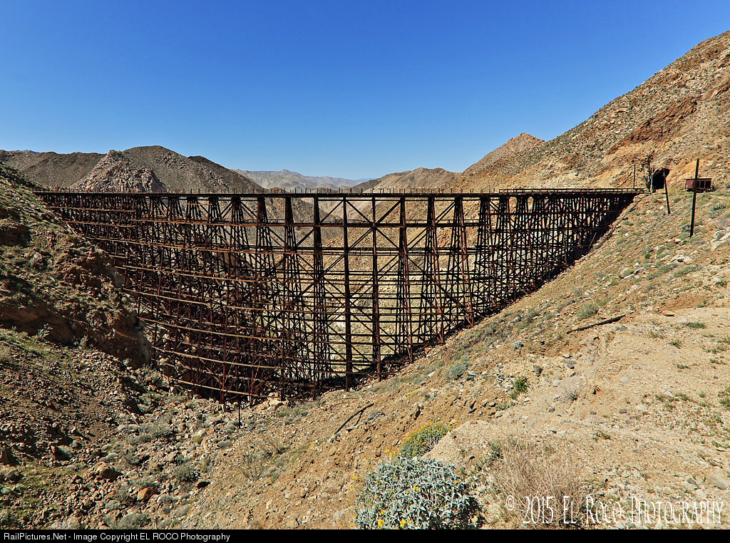 Goat Canyon - Built in 1932 to by pass a tunnel that had collapsed in an earthquake (located to the right, out of the frame) the trestle at Goat Canyon in the Carrizo Gorge is over 180 feet high and at more than 600 feet long, it was the largest non-liner wooden bridge in the United States.