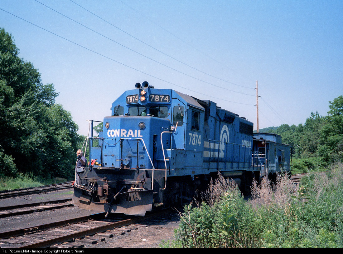 Sparkill Wye Power for Conrail NB-51 runs around the Sparkill Wye with their N8B caboose in tow. The track immediately behind the GP38 was the single Sparkill Yard track. The two tracks beyond this are the Northern Running Track and a runaround. As of this date only one active customer remained on the north end of the Northern Branch, Minigrip in Orangeburg. Most likely this crew was preparing for the shove to Orangeburg. Within four years this portion of the former Erie Northern Branch would be out of service. Today, nothing railroad-related remains of this scene. The right-of-way is intact as a rail-trail, including the wye, Piermont Industrial and the Northern.