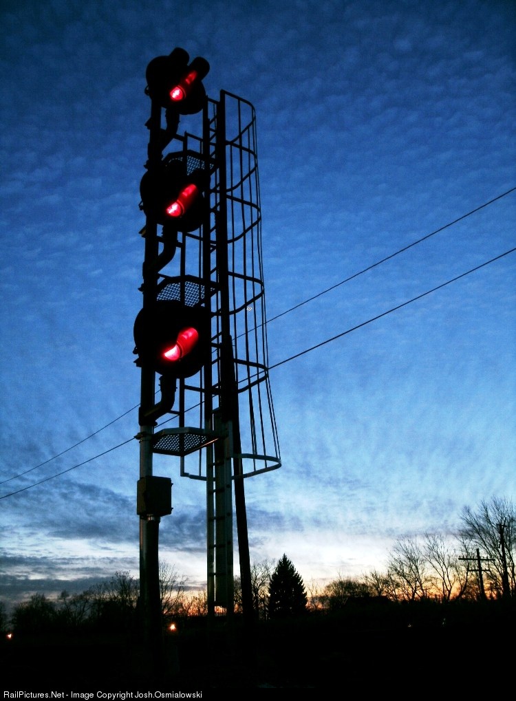 Cutting over a new signal system can take a considerable amount of time. Starting around 7 am, and now with the daylight fading, the newly turned on signals at CP-MILL just outside of Detroit, MI illuminate in contrast to the evening sky. Testing continues, however, in order to ensure proper operation for trains throughout its serviceable life.