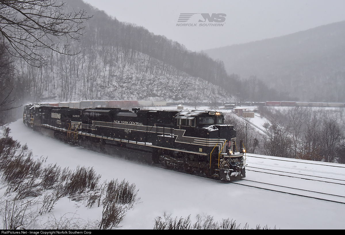The New York Central heritage unit leads train 11A westbound up track 3 around Horseshoe Curve near Altoona, Pennsylvania. Photo by Casey Thomason. For more information about Norfolk Southern, visit www.nscorp.com