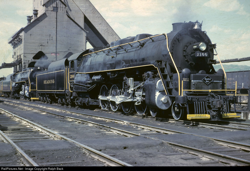 Restoration in the Future for Reading T-1 4-8-4 2100. Reading T-1 4-8-4 2100 at Reading, PA on May 5, 1962. Behind the 2100 is the 2102. Reading 2102 powered the "Iron Horse Ramble" that weekend. Inspections have identified Reading Lines T-1 2100 to be in reasonable mechanical condition and suitable for return to service and to its original coal burning capacity. The 2100, tender, and auxiliary tender will be transported via flatcar from Richland, WA to Cleveland, OH this year. Reading 2100 was built in September 1945 at the railroad's Reading, PA. shops. Reading T-1 2100, along with the 2102 and 2124, powering the railroad's "Iron Horse Rambles" from 1959 to 1964. With news of Reading 2100 restoration, I just had to post my old Kodachrome of Reading Lines 2100.
