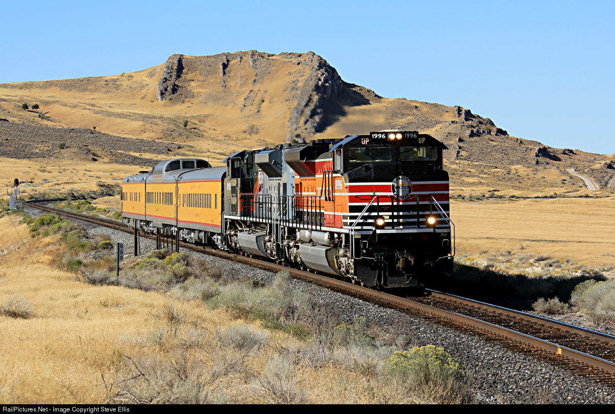 | Thing really worked out for me this day. I was able to do two hobbies at once. I was on my way out to an airshow in Wendover, Utah. And on the way I was also able to catch Union Pacific heritage units 1996 and 1983 with an operation lifesaver special on the former Western Pacific. |