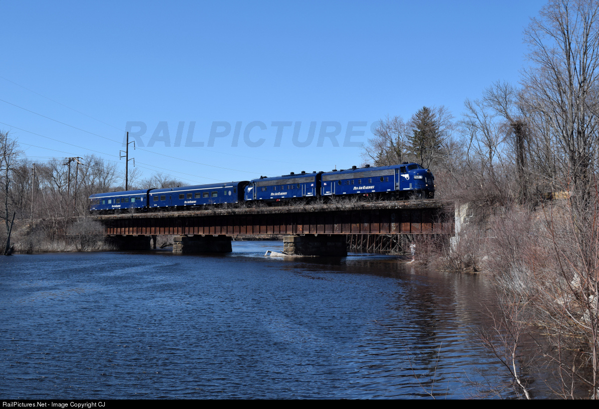 Seeing Blue. On 4/15/15, Pan Am Railways' Office Car Special was operating a return trip from East Deerfield Yard, back to Rigby Yard. After a live recrew in Lowell, MA, the OCS continues eastbound over the Concord River Bridge.