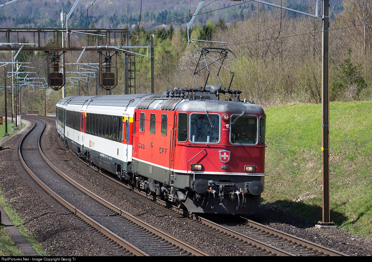 | Re 4/4 II # 11155, the last of the first series and built by SLM and BBC in 1968, is pulling the short 4 car Intercity 7 from Basel nonstop to Zürich. It's a relief train, the usual composition ist much longer and coming from Hamburg Altona. |