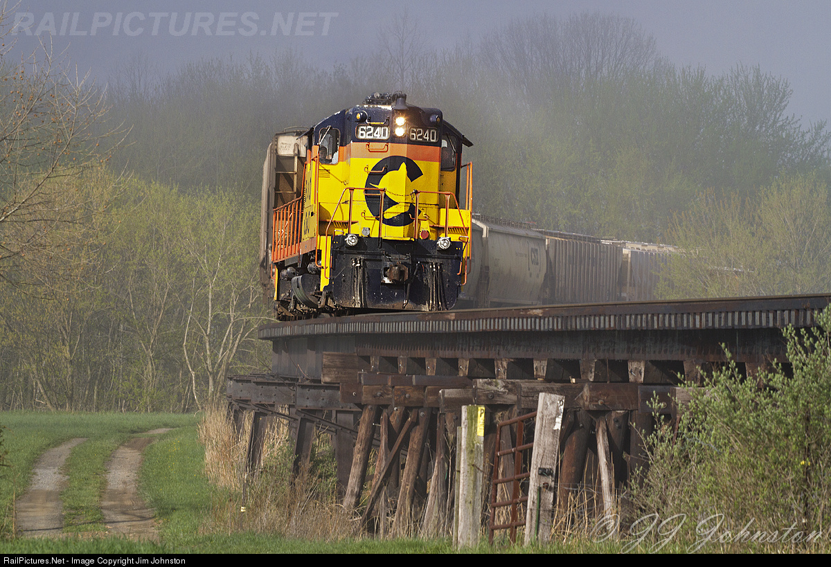 Chessie System GP-9 number 6240, originally built for the Chesapeake & Ohio emerges from the morning fog on a trestle south of Romney. The photo charter organized by Chase Gunnoe Photography on the Potomic Eagle featured great trains and locations.