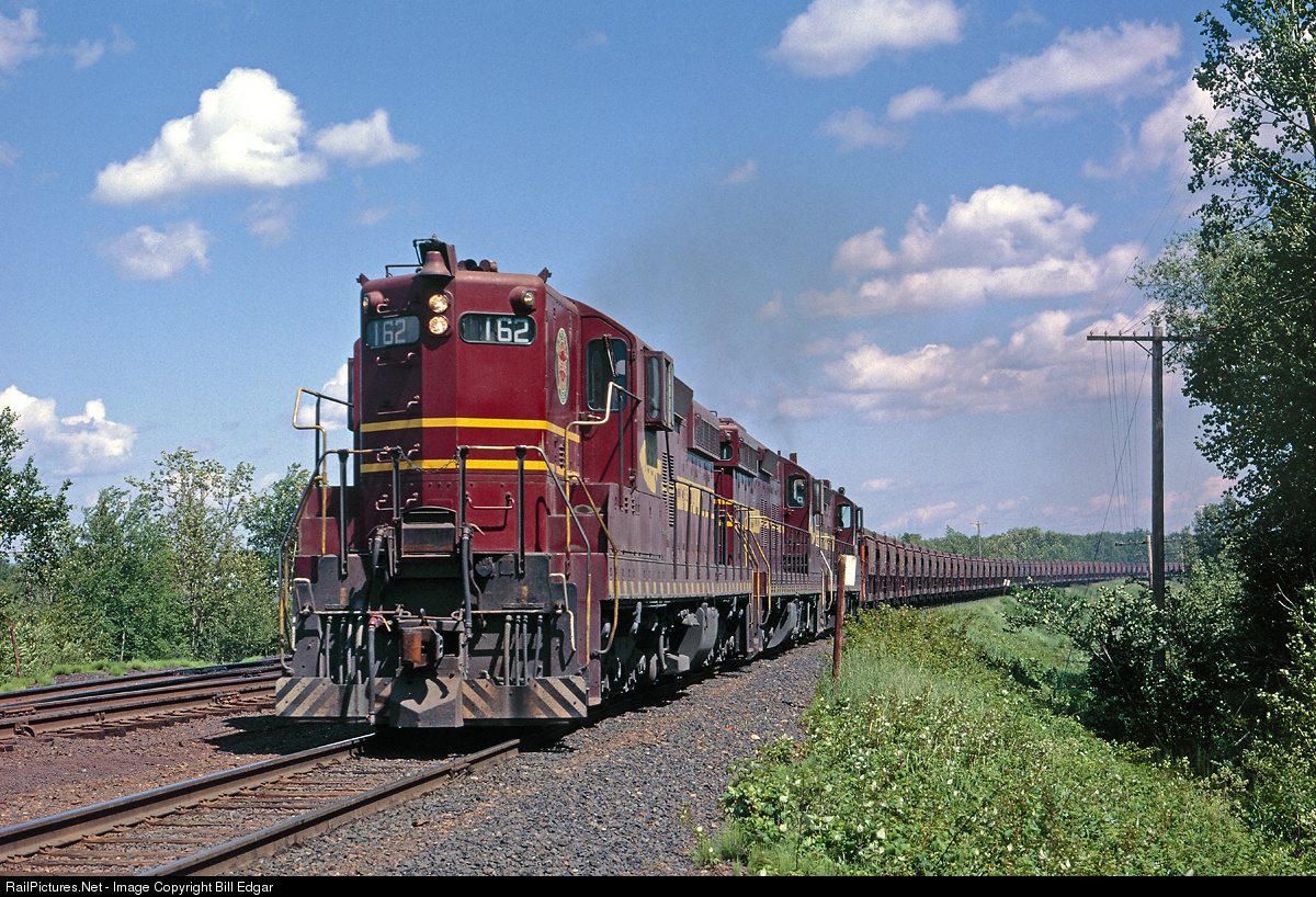 DMIR SD9 No. 162 leads a trio of SDs on an empty ore train out of Proctor, MN through Adolph, MN en route to the Missabe Iron Range. This location near Midway Road is just past the junction for Missabe's interstate branch, now an important link in Canadian National's transcontinental route to Chicago.