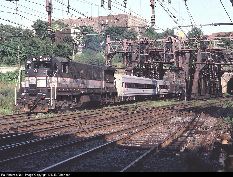 NJT 4172 was just another U-34-CH on 14AUG86 as it led train 1601 West at West End interlocking. Jersey City, NJ