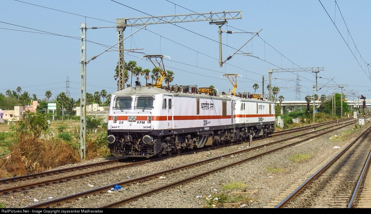 RailPictures.Net Photo: 30341, 30408 Indian Railways WAP-7 at Chennai, India by Jayasankar Madhavadas
