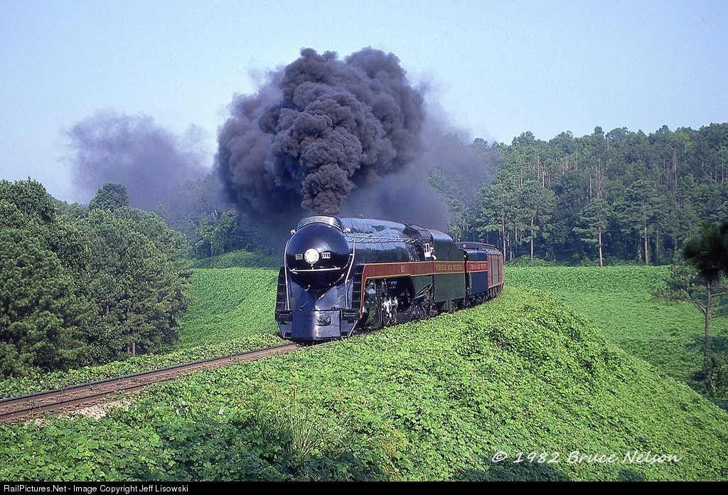 August 20, 1982. N&W 611 accelerates through a Kudzu laden fill shortly after leaving Irondale on her journey back to her birthplace of Roanoke, VA. This scene can be viewed on the DVD "611 Birmingham Memories" by Goodheart Productions. Thank you, to Bob Lyndall for the correction on the location!