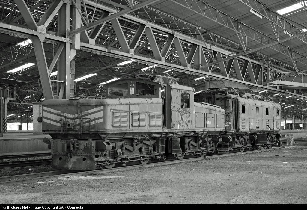 Covered in dust and in very poor condition now, these two examples of South African Railway electric motive power history are still standing in a disused Goods Shed at Danskraal / Ladysmith. Front left is Class ES Shunter, E518, centre cab electric shunting locomotive built in 1952 and known to their crews as “Studebakers”. Behind the ES Shunter is Class 1E, E25, built in 1923 by Swiss Locomotive & Machine Works. The Class 1E locomotives were the first electric locomotives placed in Service by SAR. During 2014 they formed part of a Go Dove auction lot (for scrap), which included a Class 35 diesel locomotive and a burnt out Class 6E1. It appears that the Class 35 and the Class 6E1 have already been cut up, but these two remain for now.