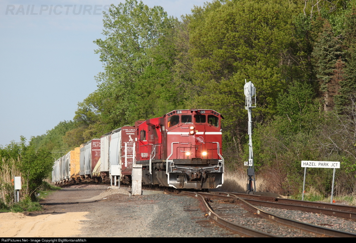 MNNR 35 leads the Minnesota Commercial Bayport Job past Hazel Park Jct. (MP 6.5) on the UP Altoona Sub.