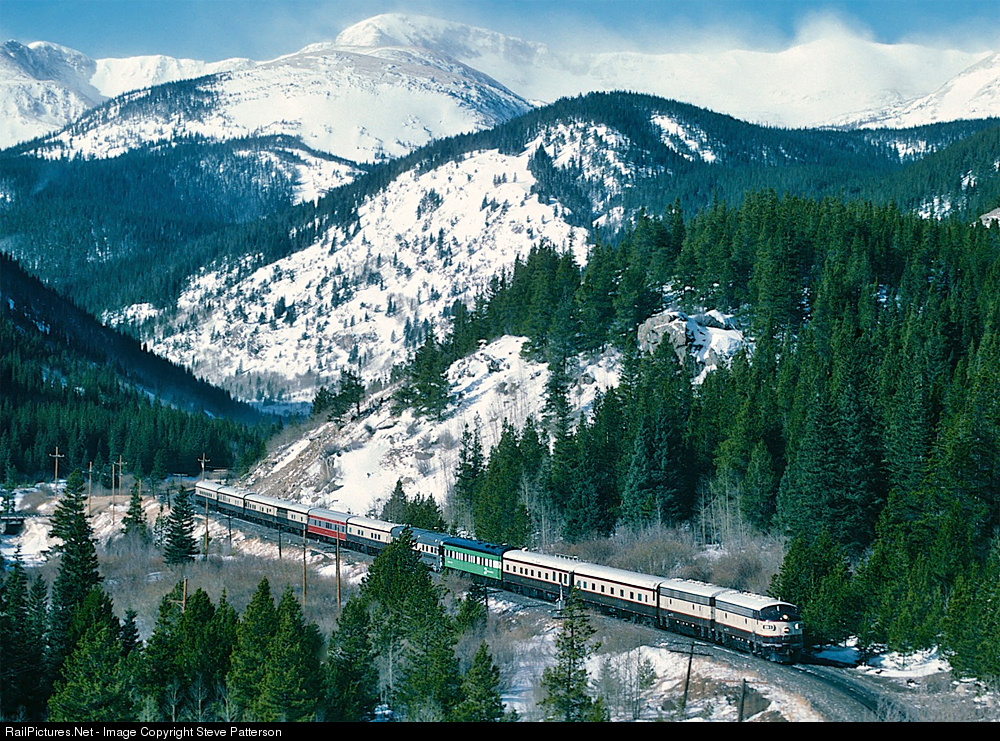 After allowing board members, officers and their guests to enjoy the Winter Park, Colo. ski slopes on the other side of the Continental Divide, executive F’s BN-1 and 2 are on the D&RGW and returning to home rails at Denver just after leaving the Moffat Tunnel on Jan. 18, 1994. One can see the tremendous wind gusts blowing over the crest of the Rockies.