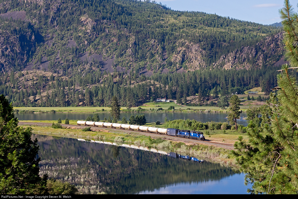 MRL's Day Gas heads West along the Clark Fork River with a small train and two immaculate SD40-2XR's leading the charge.
