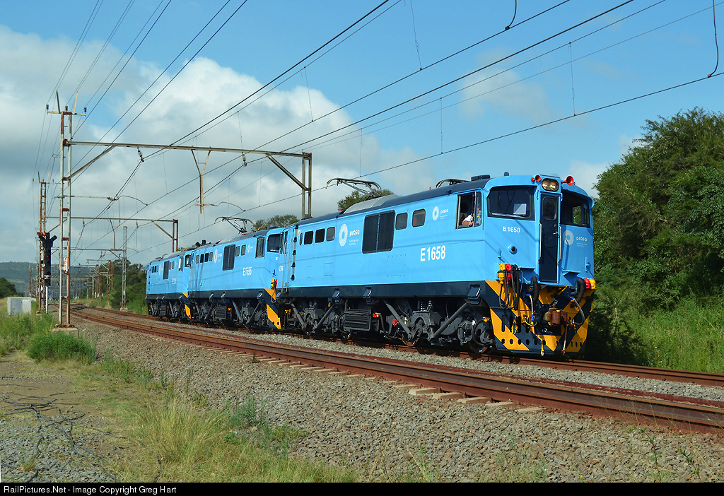 | Brand New refurbished (ex. Transnet Engineering, Bayhead) 6E1 locomotives make their way Braamfontein. These loco's now haul long distance passenger trains in the Western Cape. |
