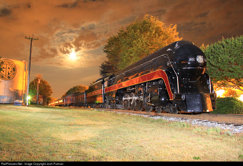 On it's final night at the North Carolina Transportation Museum, newly restored Norfolk & Western Class J #611 rests peacefully under a partly cloudy sky as the breaks through.