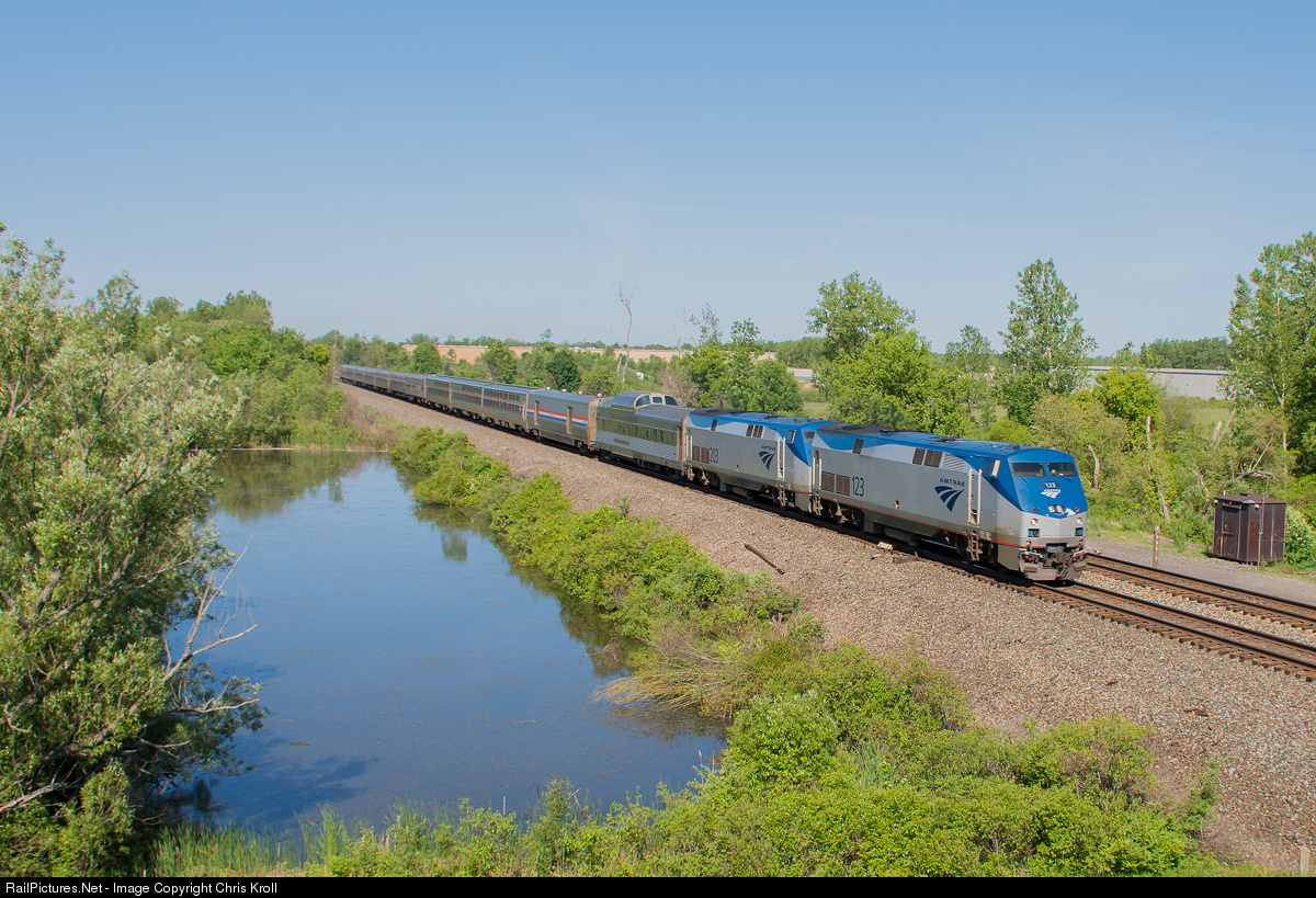 RailPictures.Net Photo: AMTK 123 Amtrak GE P42DC at Lancaster, New York by Chris Kroll