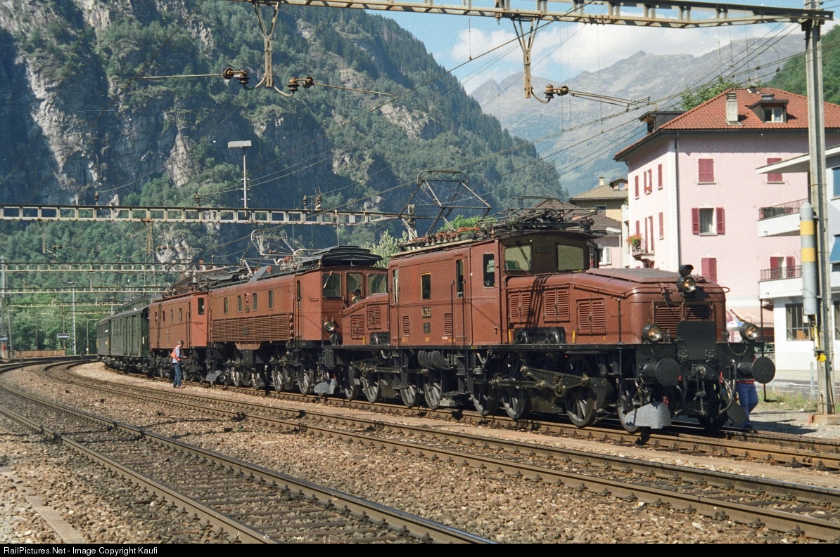 Here Ce 6/8 II 14253 pulls it's historic fast train over the famous Gotthard Route and it gets help from Be 4/6 12320 and Be 4/7 12504. |