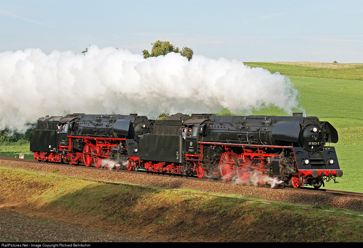 Two former Deutsche Reichsbahn (DR) Pacific Steam Locomotives: 01 533 owned of association Oesterreichische Gesellschaft für Eisenbahngeschichte (ÖGEG) and 01 509 operated by the Pressnitztalbahn.