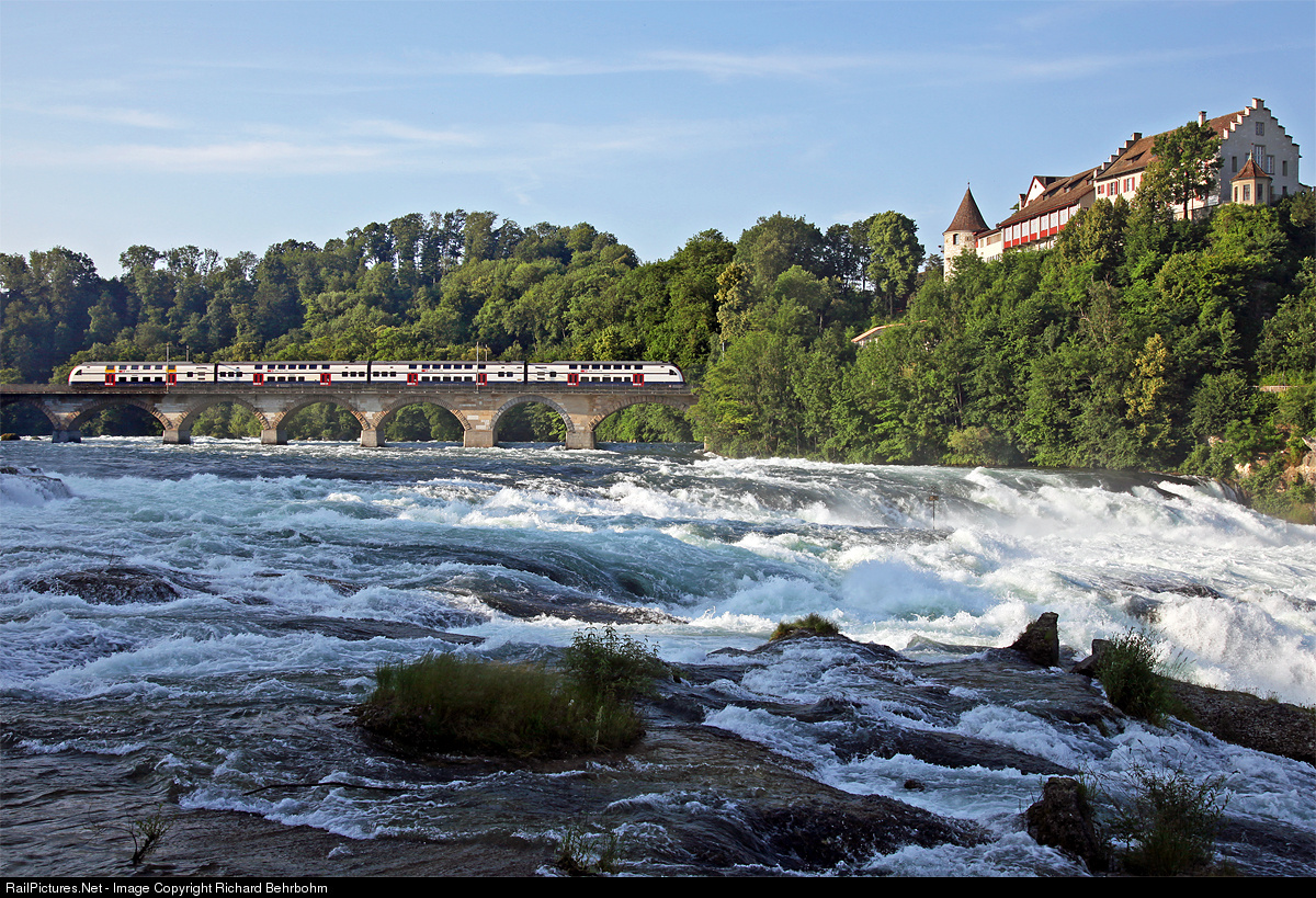 | Early morning at the Rhine Falls, the Siemens double decker is running as S16 Herrliberg-Feldmeilen - Thayngen.