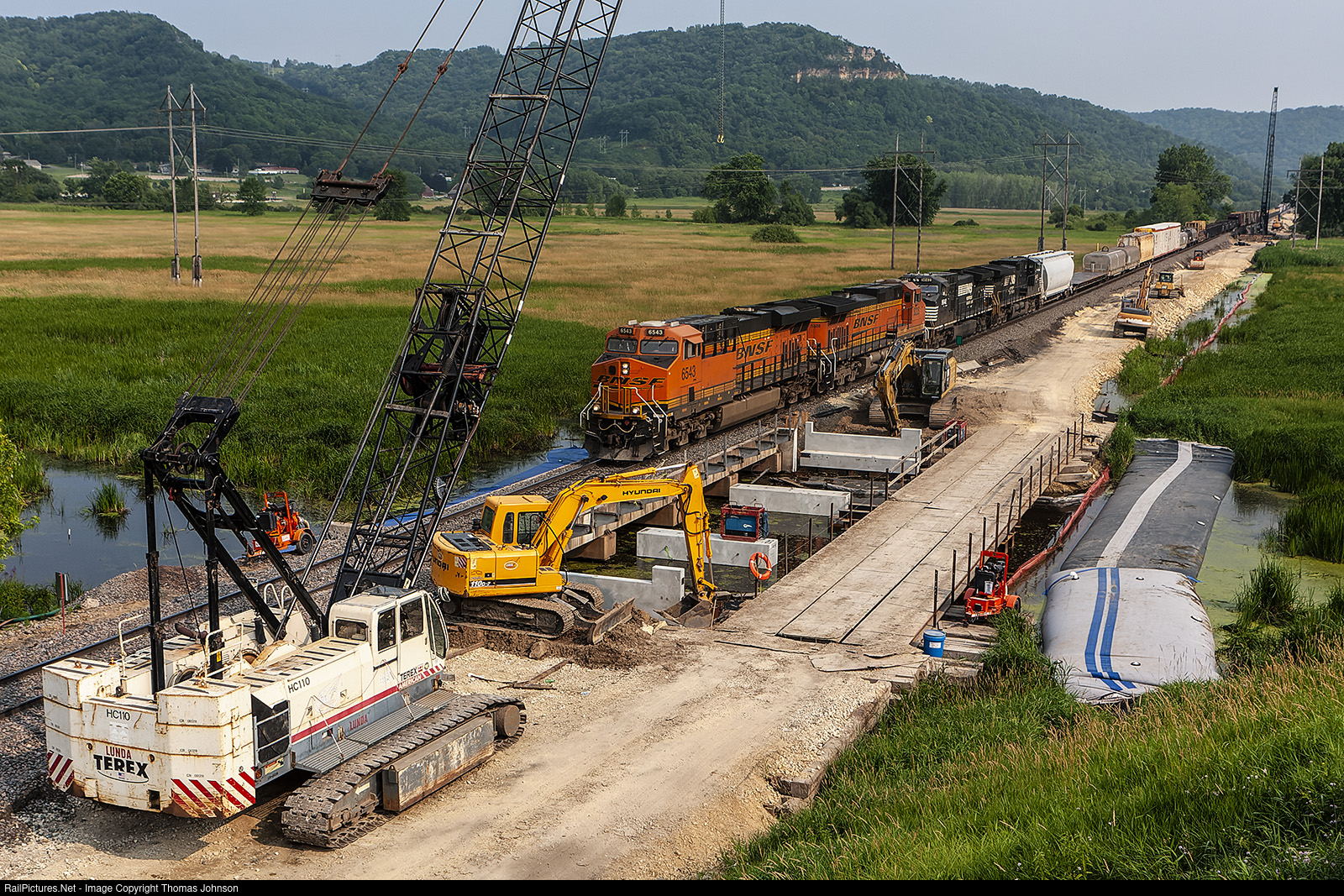 Work continues on the BNSF double-track project from the North La Crosse Yard to C.P. Graf. Three bridges are being installed in the area known as "The Swamp".