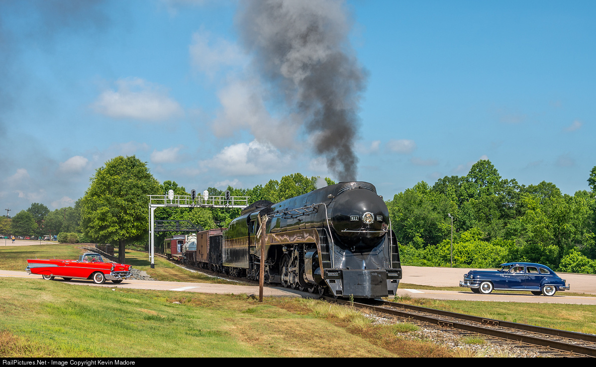 Relics of a Golden Age. A pair of classic automobiles pause for the passage of a Norfolk & Western mixed train, headed up by a streamlined, J-Class Locomotive that is a classic in its own right. There was a time when form meant every bit as much as function, and US Industries competed fiercely to capture the eyes and the imagination of the consuming public. Sadly, that time faded to black about 50 years ago. I wonder how many of today's automobiles, or railway locomotives will be held in the same level of esteem as the machines seen here, 50 years from now?