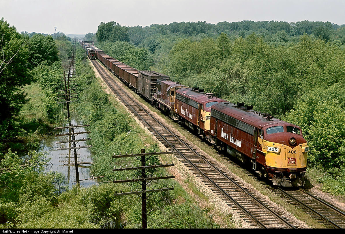 Half an hour out of Silvis yard, FP7A 406 heads through the riverbottom swamps east of Colona, Illinois, on its way to Chicago. The unit, along with nine sisters, is four feet longer than a standard F7A to accommodate a boiler; all were turned out by EMD in the summer of 1949 for passenger service, and most still find regular work hauling Chicagoland commuters. But increasingly they also earn their keep on the point of freight trains. After Rock Island’s 1980 collapse, this track will go to Iowa Interstate, a regional whose diesels still proudly wear the Rock’s distinctive herald.