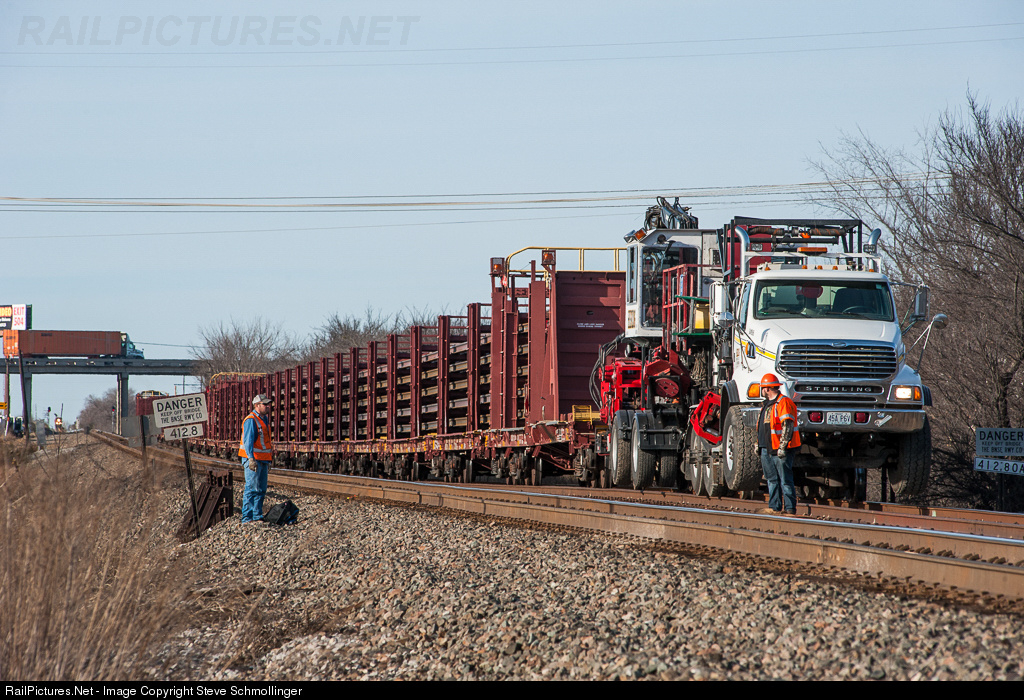 As their workday ends, the crew members of a Herzog rail train talk about their schedule for tomorrow as a BNSF southbound approaches in the distance.