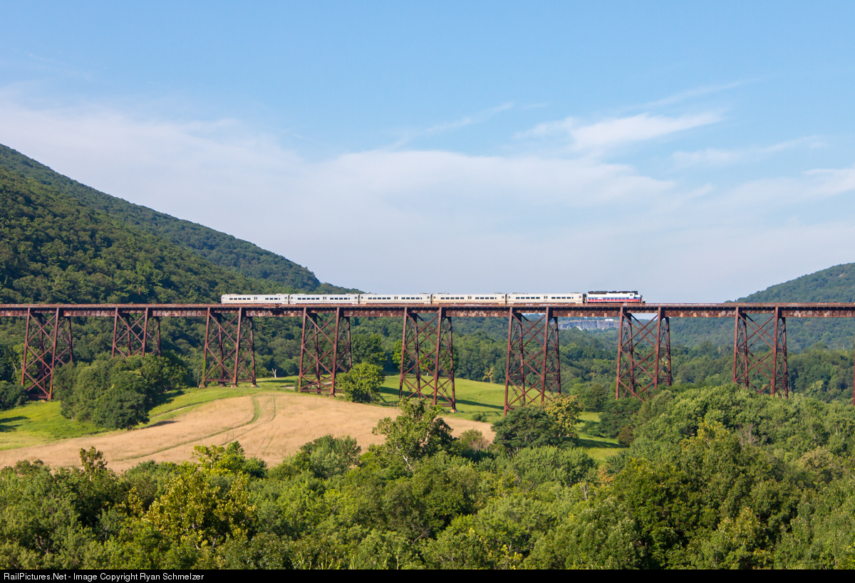 Anyone who uses stations north of Salisbury Mills on Metro-North's Port Jervis line are treated to the amazing views to be had atop the Moodna Viaduct. On this morning the engineer brought this Hoboken bound express to a near stop at the center of the span, presumably to allow passengers to enjoy the view.