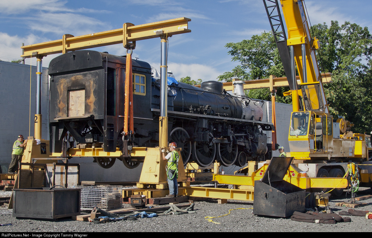 Former Canadian Pacific G5d that was used on the Virginia Central Railroad being lifted up for loading to be shipped to a new owner.