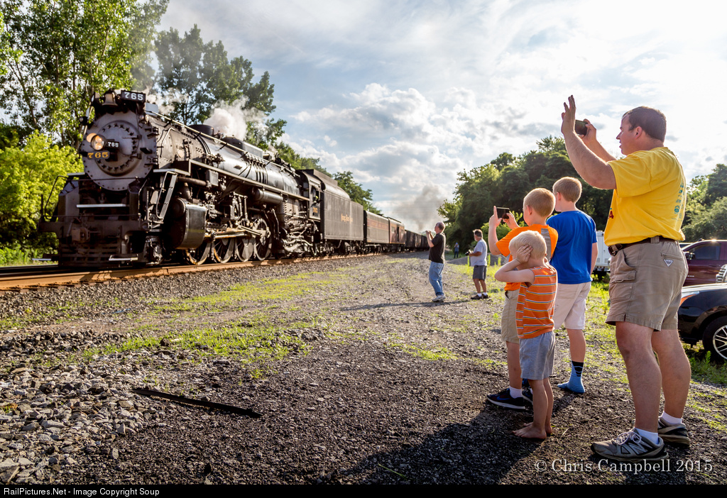 765 Barrels East across Sunnyside Road in Vermilion. Bystanders all down the line - both prepared for the event, or taken totally by surprise - all react in different ways. These boys and their father were definitely prepared. I asked them if they would pose, waiving, for me in front of my shot to shield the sun and make an "into the sun" shot a little more interesting. One of them said, "that would be neat, but do you mind if we don't wave? I want to video the train"