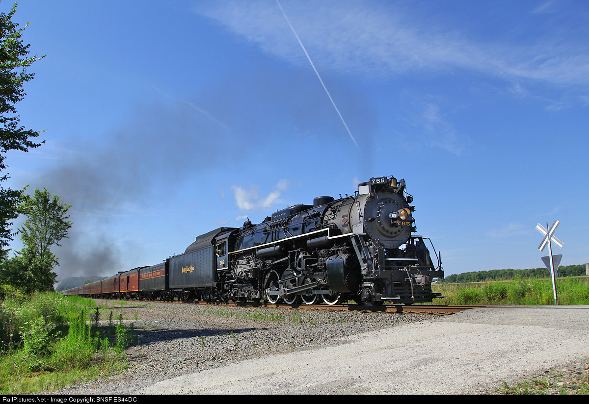 RailPictures.Net Photo: NKP 765 Nickel Plate Road Steam 2-8-4 at Fowler, Ohio by BNSF ES44DC