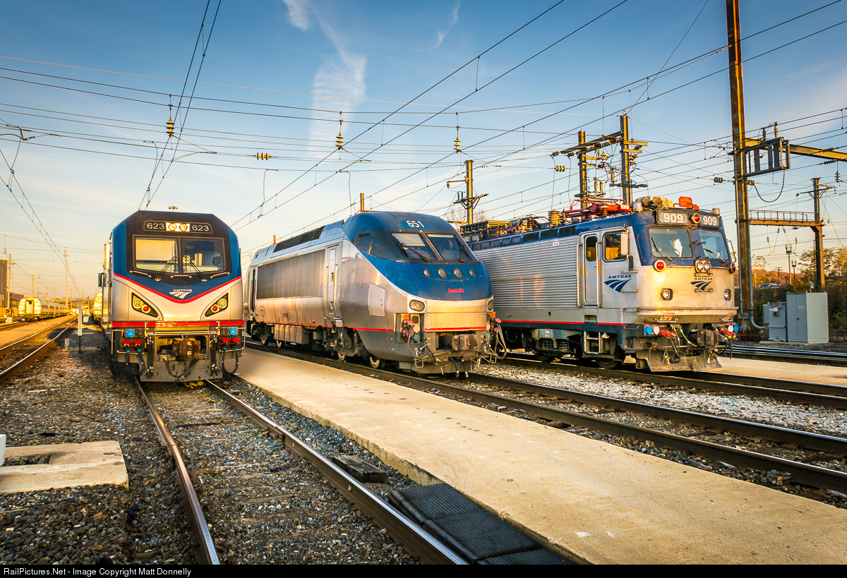 One of each. For a brief time, the NEC once again saw three types of Amtrak electric locomotives operating; the venerable AEM-7, HHP-8, and ACS-64, all seen here in order of newest to oldest (left to right). The new kid on the block will eventually be the only kid on the block, which will be a first for the Amtrak conventional electric roster.